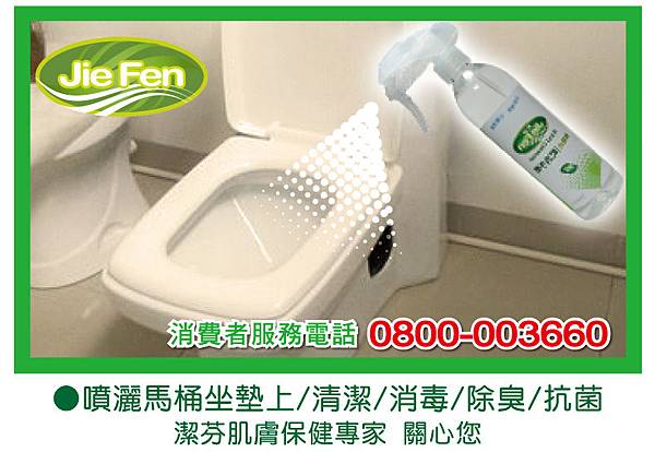 使用乾洗手劑噴灑在馬桶坐墊上,既可清潔、消毒、除臭還可抗菌
